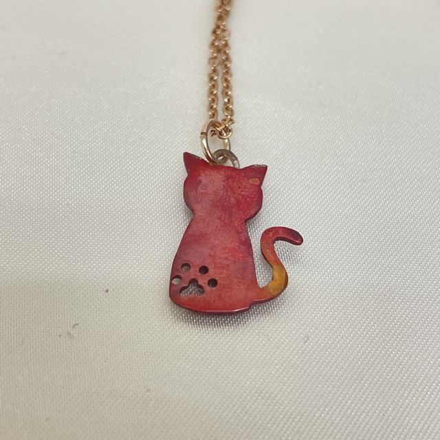 「秋元彩花さんのハンドメイド猫柄ネックレス」