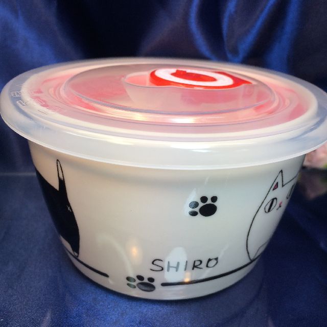 【猫3兄弟】パック小鉢(小)行進柄。蓋付で電子レンジOK。そのまま冷蔵庫にも。【猫3兄弟】パック小鉢(小)行進柄。蓋付で電子レンジOK。そのまま冷蔵庫にも。